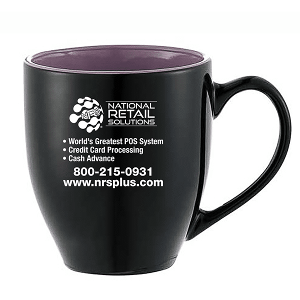 A two-tone ceramic coffee mug with the NRS logo and mascot